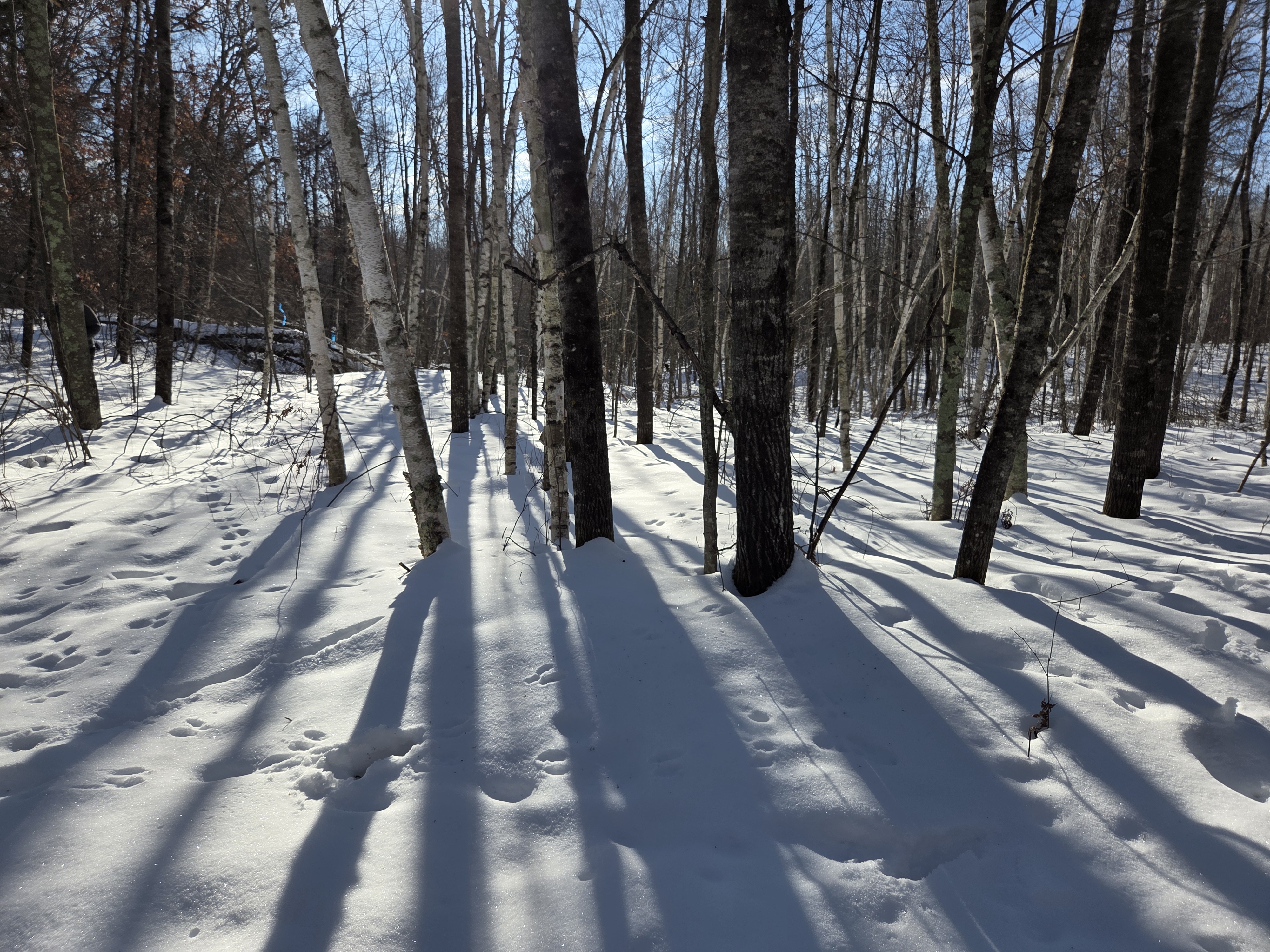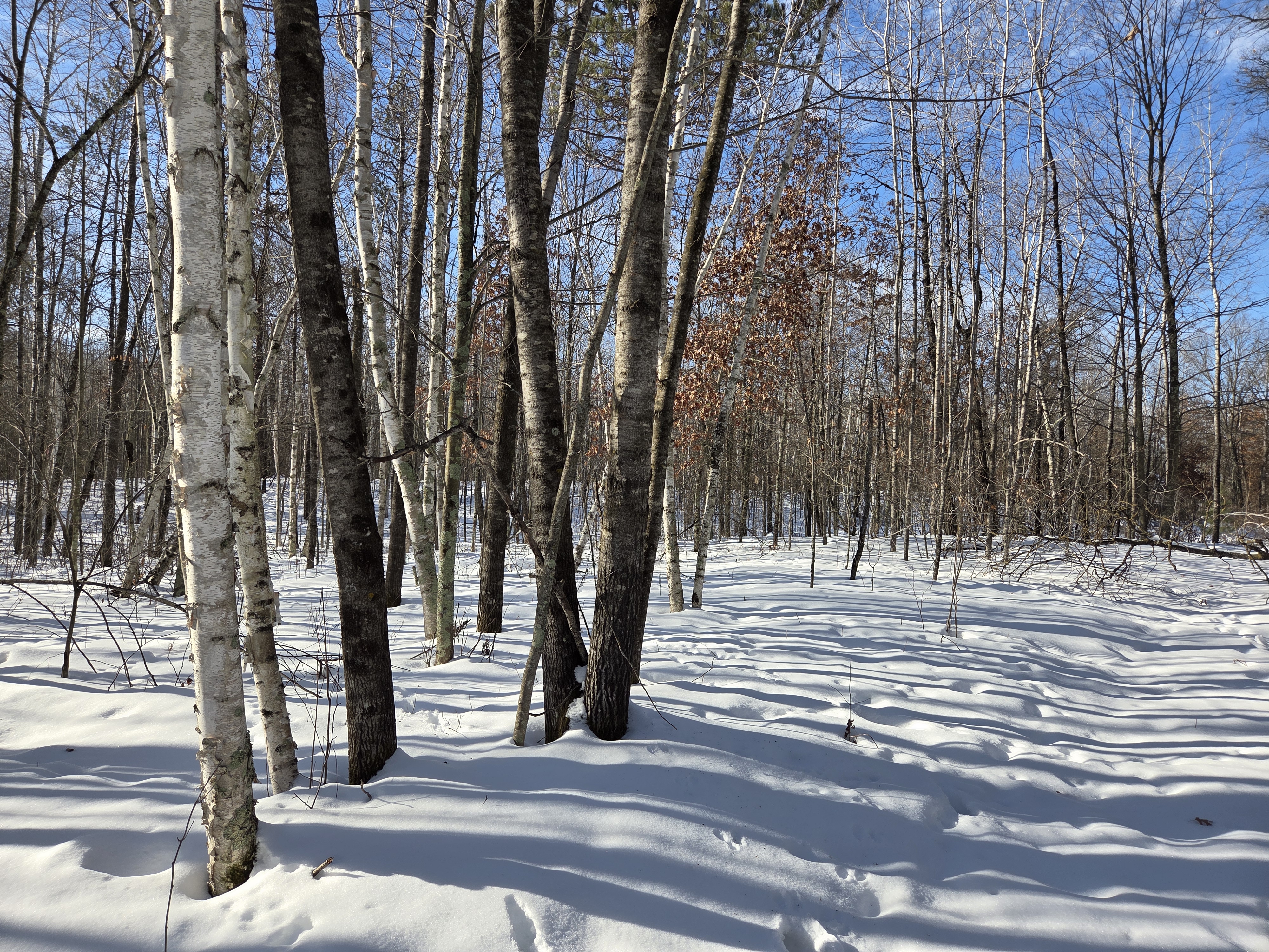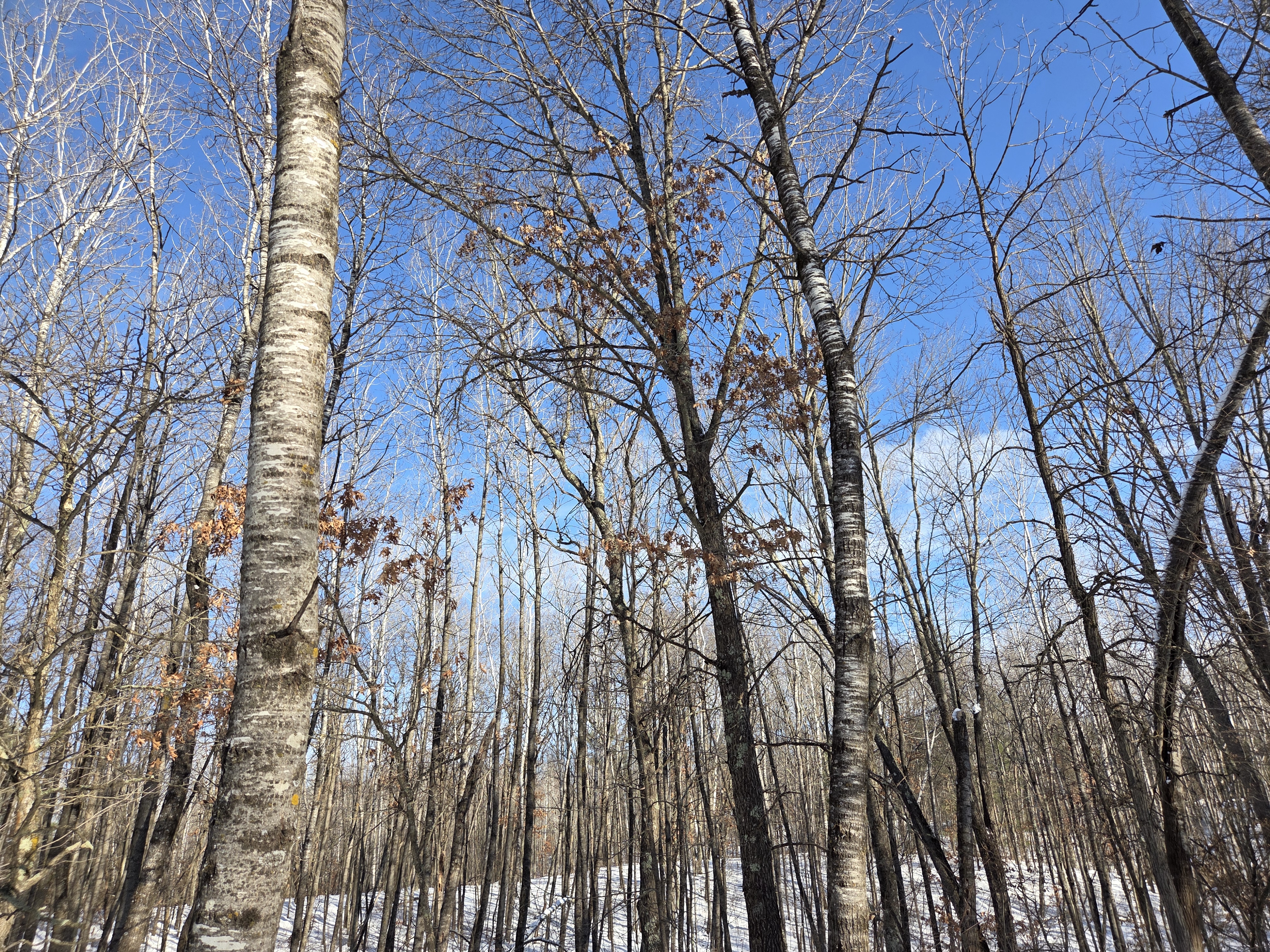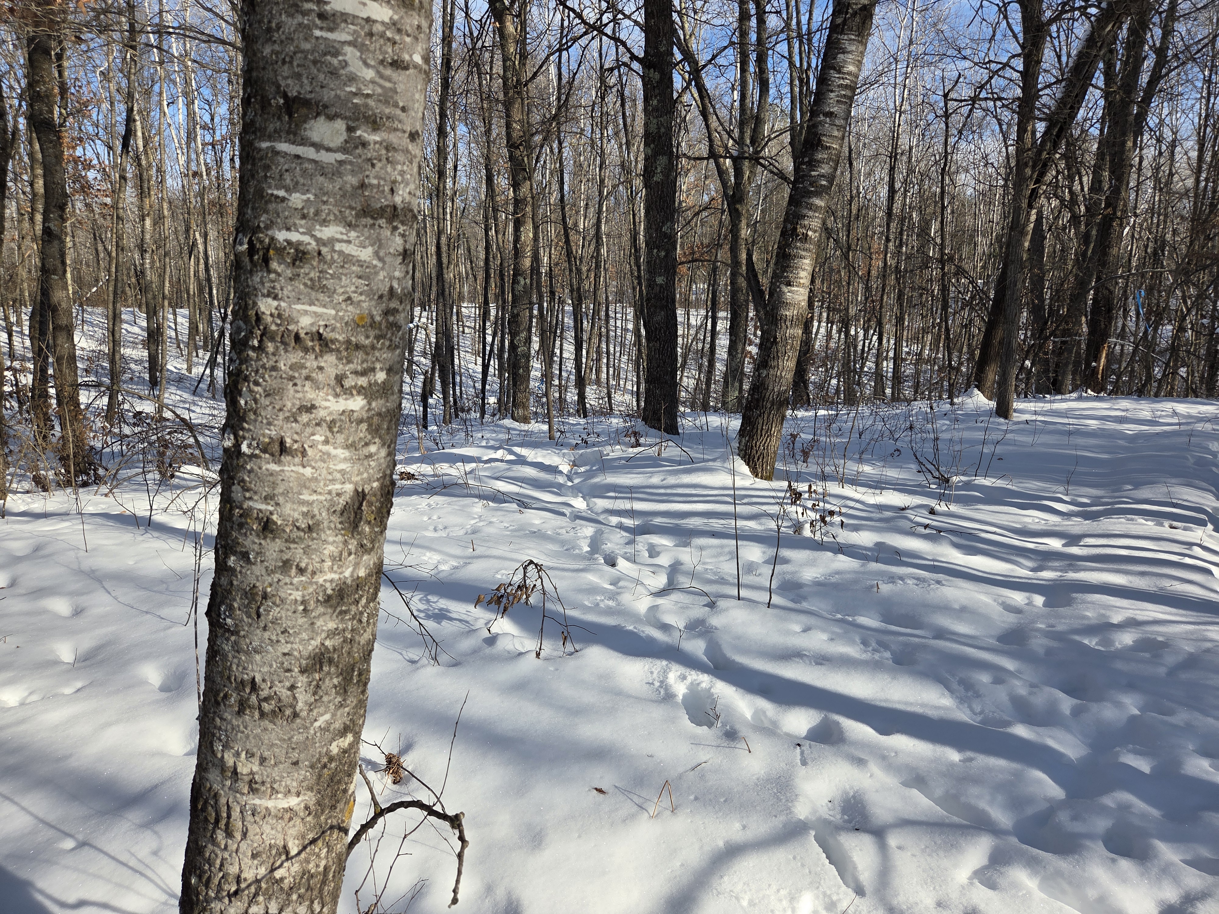 The property is mostly hardwood forest, highlighted by a strong presence of mature oak, with poplar and birch mixed throughout. It’s the kind of open, attractive woods that feels private and peaceful, yet you’re still close to town amenities—about 15 minutes to Trego and about 30 minutes to Hayward.