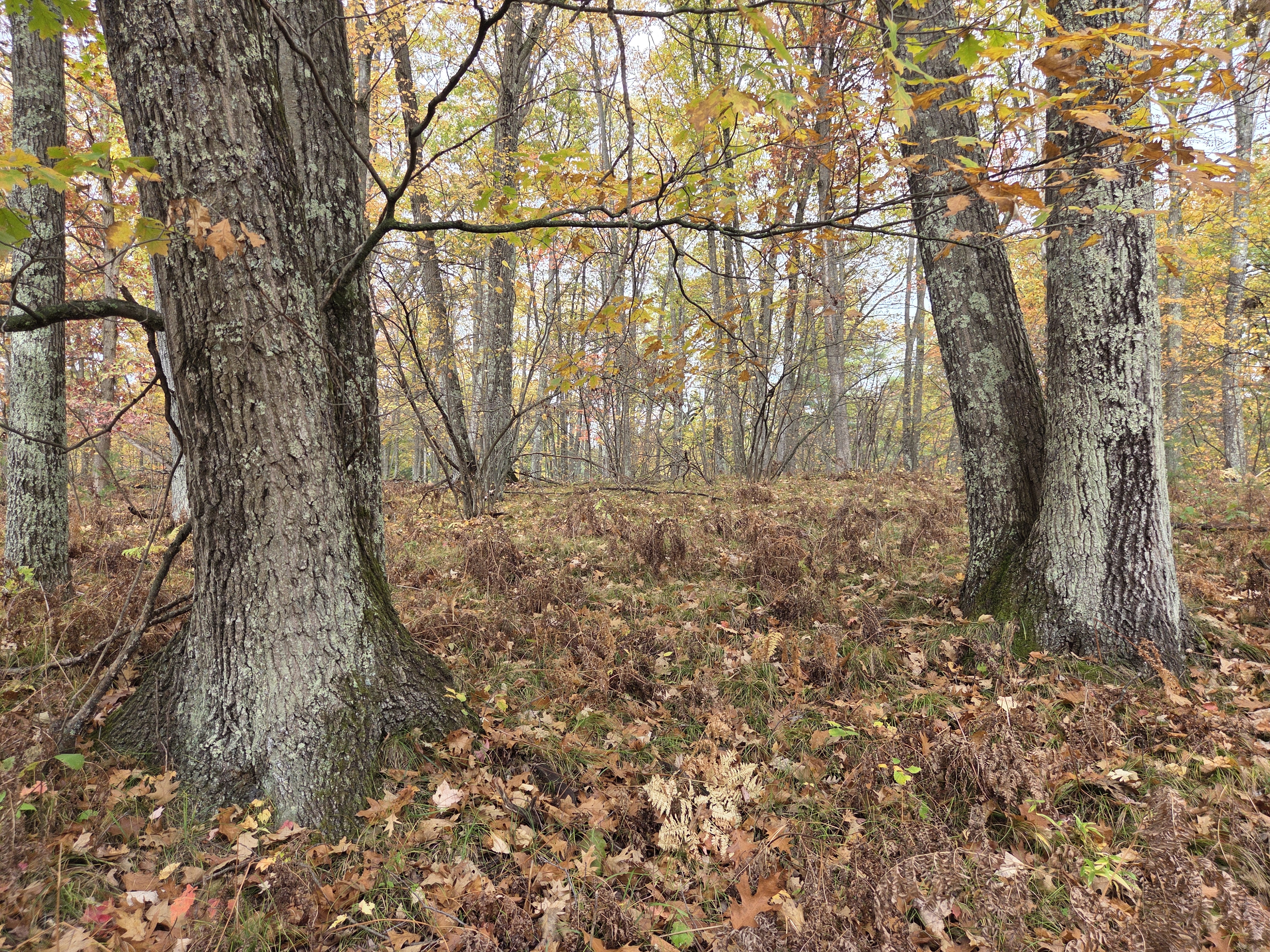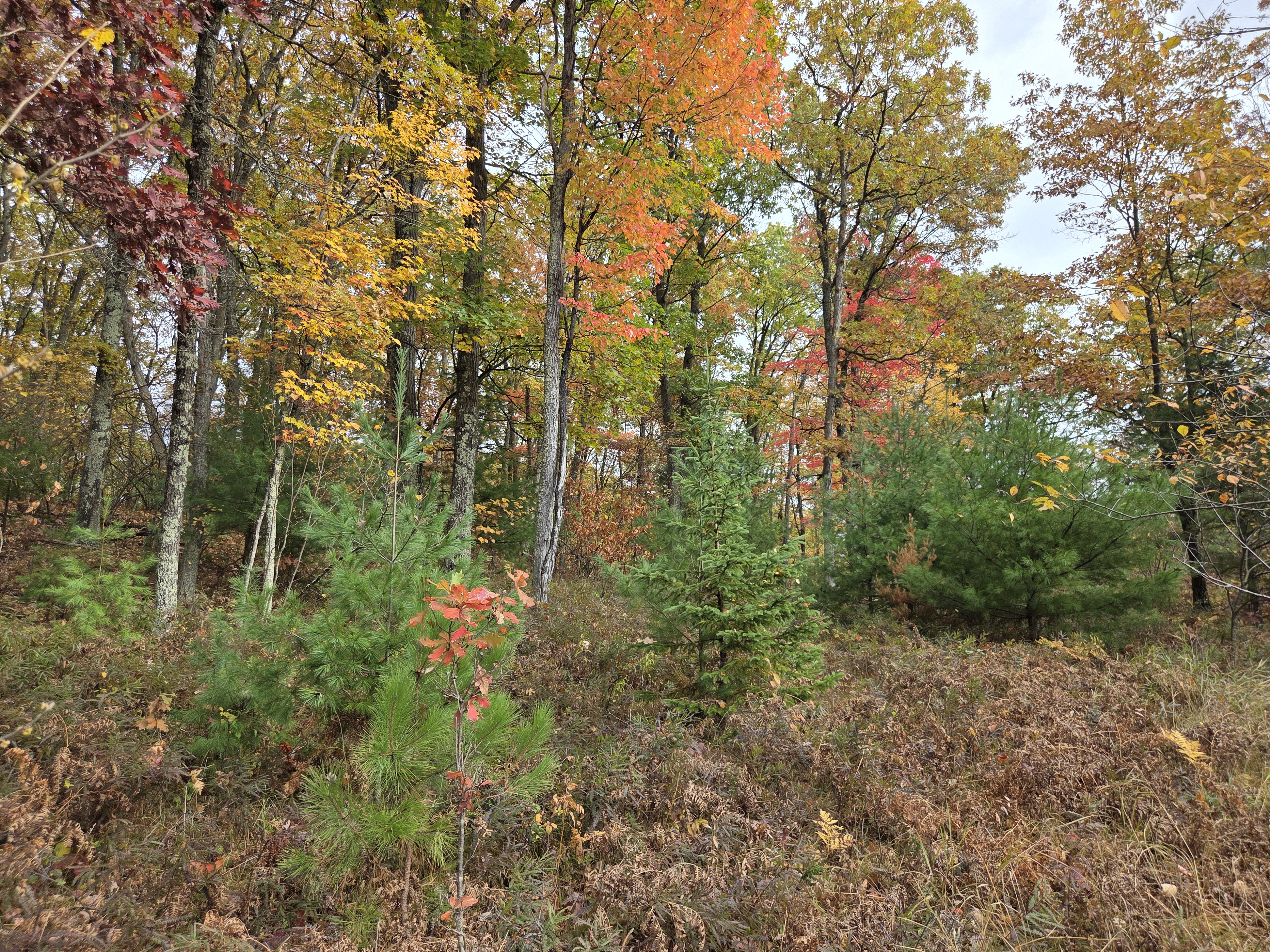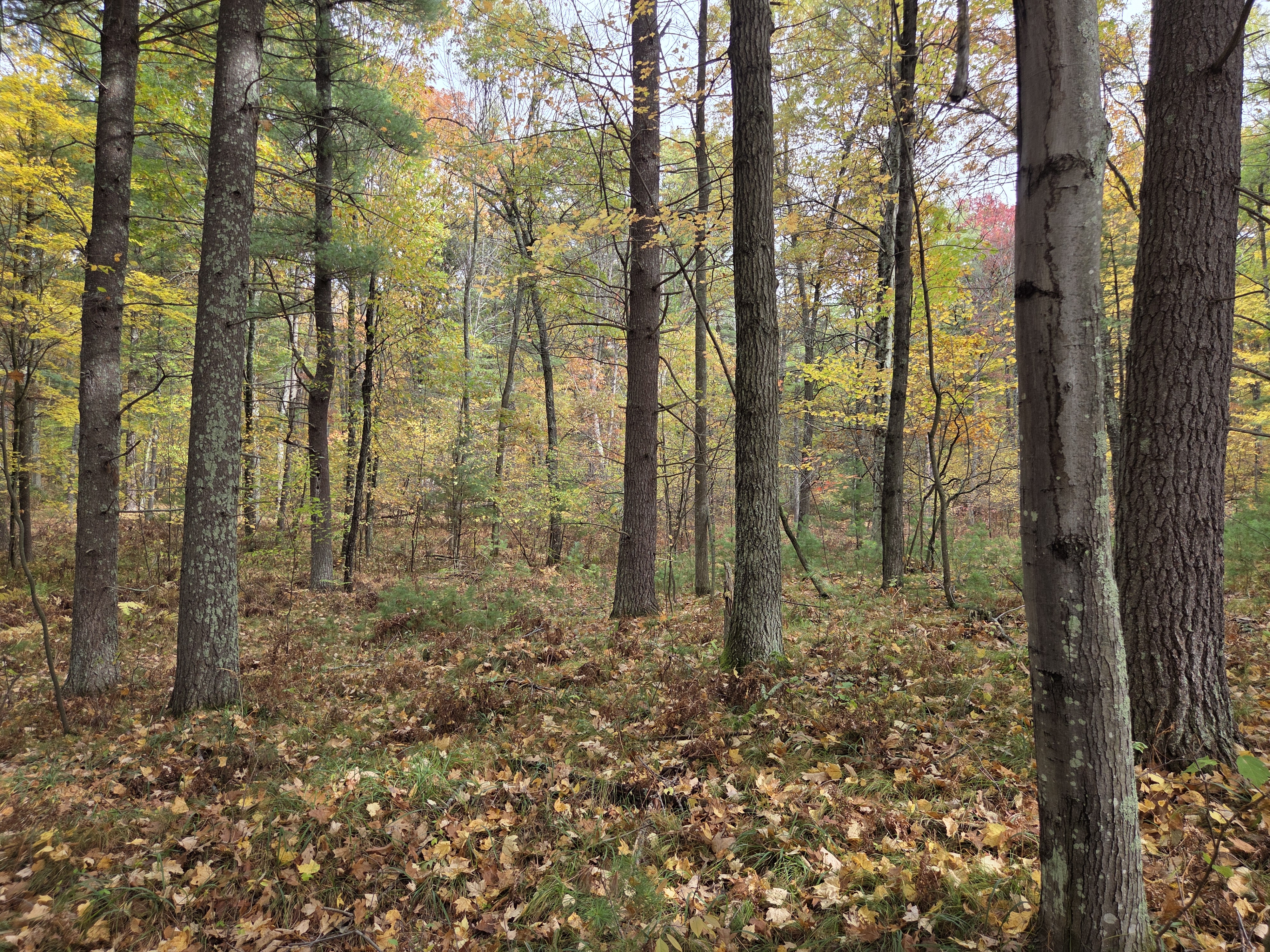 The land itself features mature, uncut hardwoods that form a beautiful canopy of color through the seasons. The terrain is gently rolling, making it easy to walk and ideal for setting up camp or building a seasonal cabin. The forest floor is open and clean, carpeted with ferns and native grasses—perfect for hunting, or evenings around the campfire.