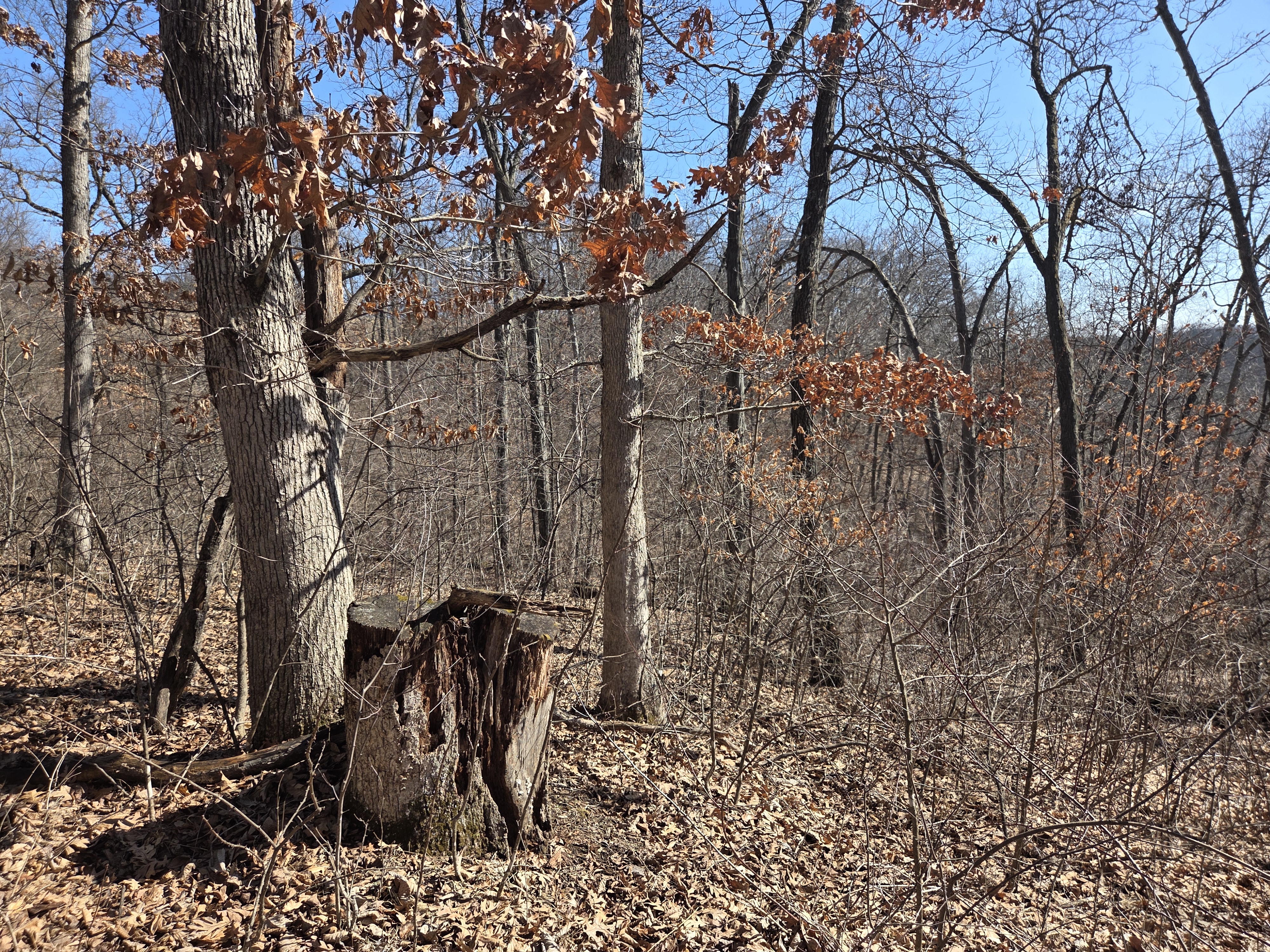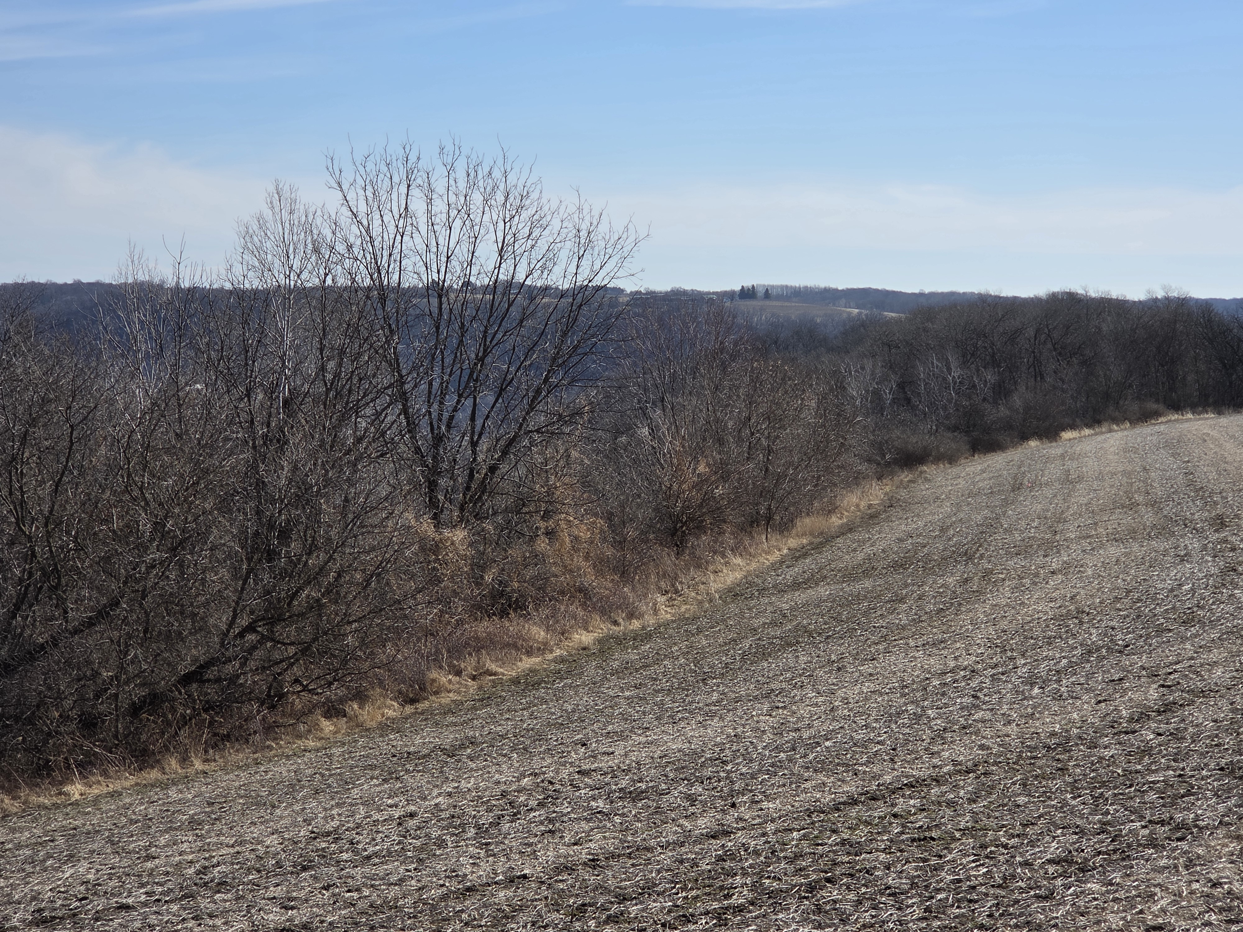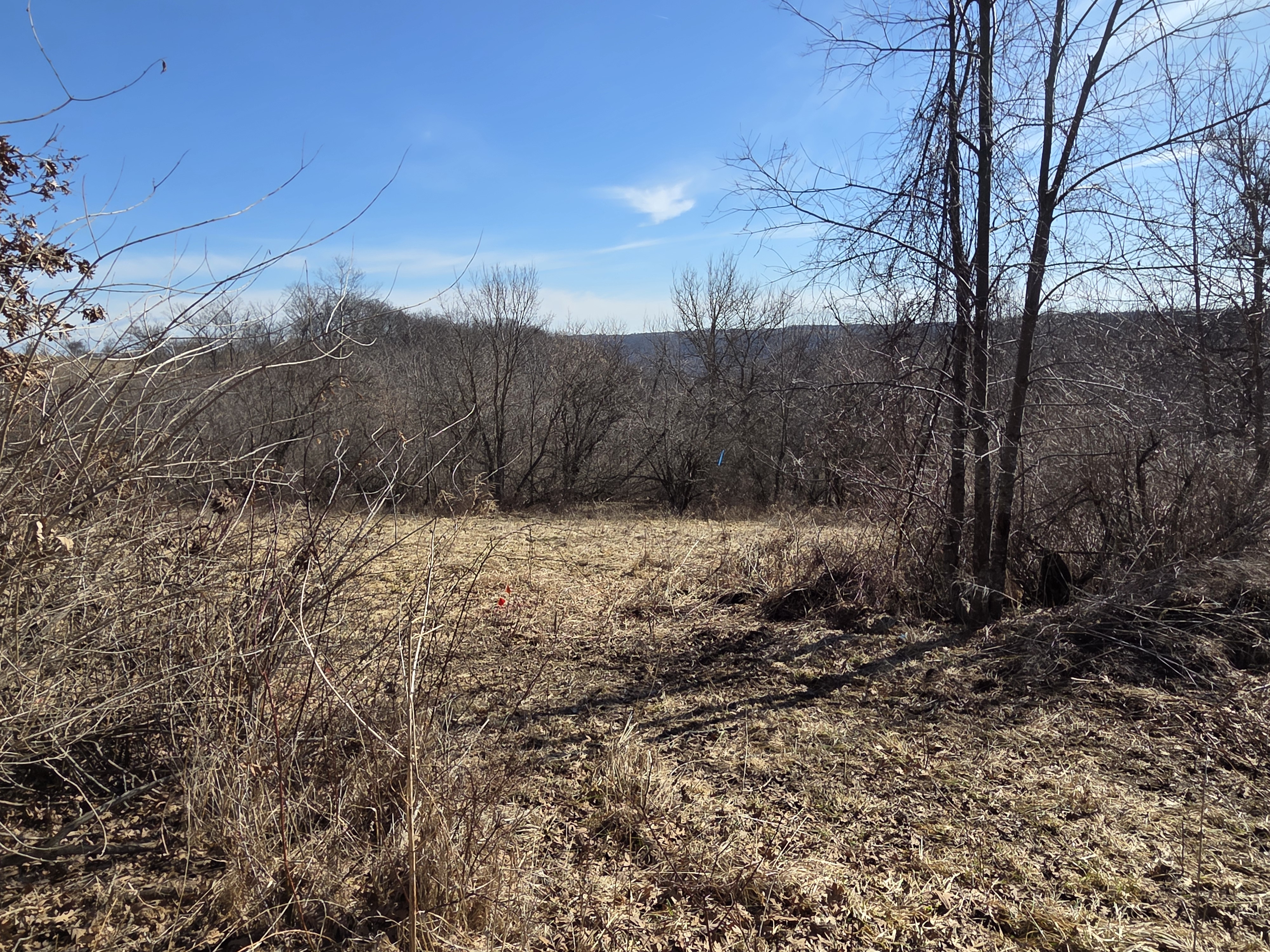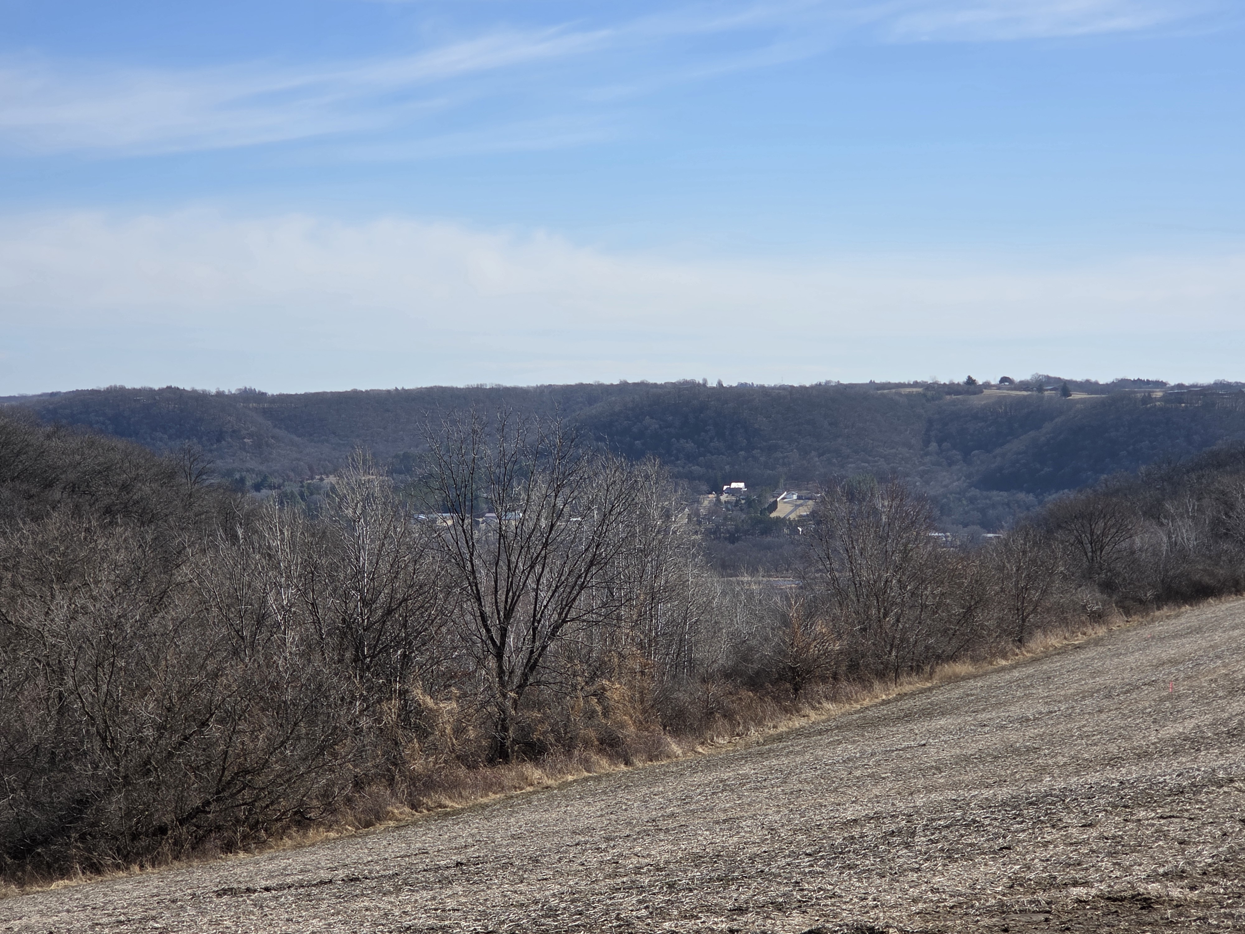 Set high on a ridgetop/bluff, the property offers views of Gays Mills from above, then slopes down into a fully wooded valley—classic Driftless topography with dramatic elevation changes and a true “ridge to bottoms” feel. The layout creates natural travel corridors and multiple stand locations, and there are signs of deer throughout, making this an excellent setup for a dedicated hunting property.